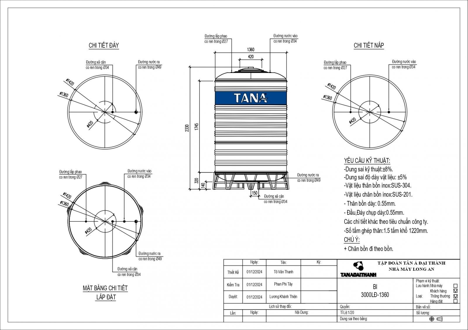 BỒN INOX TÂN Á 3.000L ĐỨNG