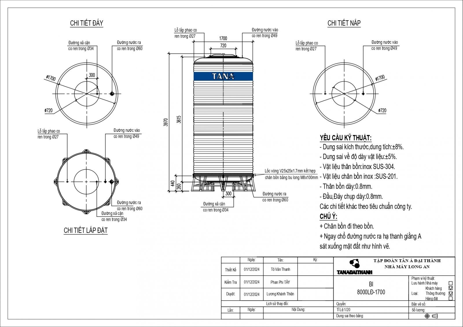 Đặc biệt bồn nước Inox công nghiệp có dung tích từ 10.000 đến 30.000 lít được chế tạo trên dây chuyền máy móc thiết bị tiên tiến nhất thế giới khẳng định được chất lượng sản phẩm đáp ứng nhu cầu sử dụng cho các khu chung cư cao tầng và nhà máy công