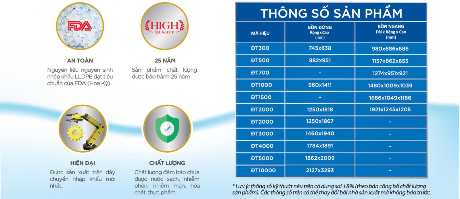 - Bồn nhựa Thế Hệ Mới : chứa nước sạch, nước nhiễm phèn, nhiễm mặn, hóa chất, thực phẩm.