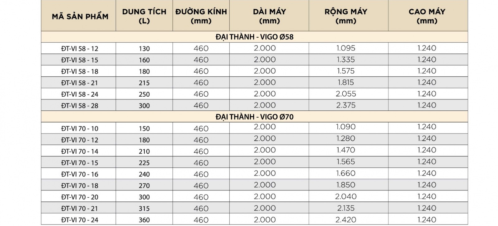 Máy nước nóng năng lượng mặt trời ĐT 210L 70-14 Vigo